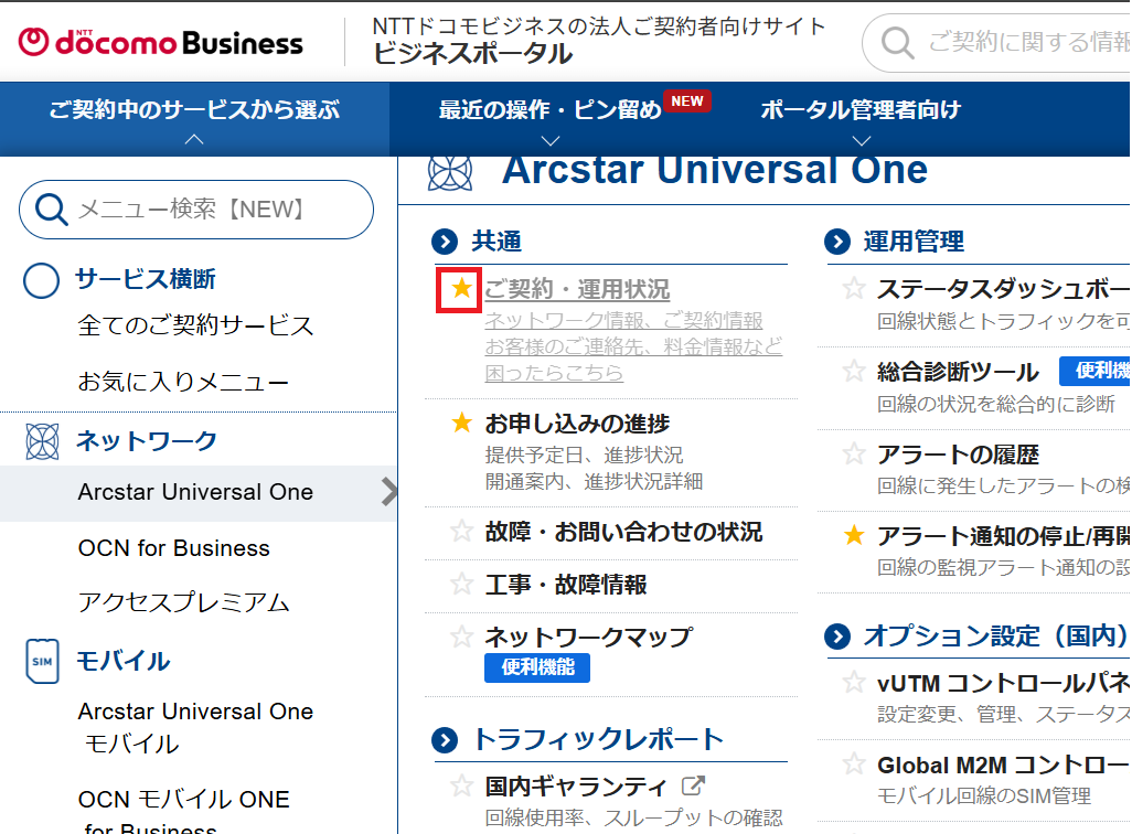 - 【Arcstar Universal Oneモバイル/OCNモバイルOne for Business】ダッシュボード内「運用状況」に法人モバイルサービスの状況を追加しました